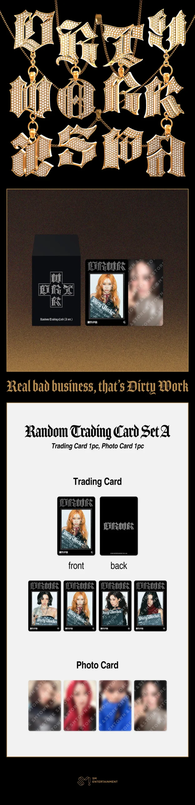Oficjalny zestaw kolekcjonerskich kart AESPA – Dirty Work – RANDOM TRADING CARD SET A to idealny dodatek dla każdego fana zespołu. W każdym zestawie znajduje się losowo wybrana karta z serii, co sprawia, że kolekcjonowanie staje się jeszcze bardziej ekscytujące. To wyjątkowa okazja, by wzbogacić swoją kolekcję o limitowane elementy związane z albumem Dirty Work. Karty wyróżniają się wysoką jakością wykonania i estetycznym designem, dzięki czemu stanowią nie tylko gadżet, ale także cenny element kolekcjonerski.