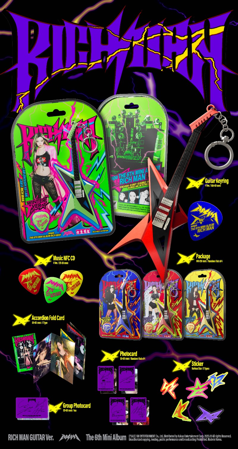 Szósty mini album aespa – „Rich Man” w wyjątkowej wersji RICH MAN GUITAR Ver. to muzyczna eksplozja energii i stylu. Karina, Winter, Giselle i NingNing prezentują świeże, odważne brzmienia, łącząc elektroniczny pop z rockowym pazurem i unikalną estetyką. Ten album to obowiązkowa pozycja dla każdego fana K-Popu, który ceni sobie nie tylko muzykę, ale i dopracowaną oprawę wizualną. RICH MAN GUITAR Ver. to inspiracja gitarowym brzmieniem i rockowym klimatem sprawia, że to wydanie wyróżnia się na tle standardowych wersji. Kolekcjonerskie dodatki i wyjątkowa szata graficzna podkreślają charakter albumu.