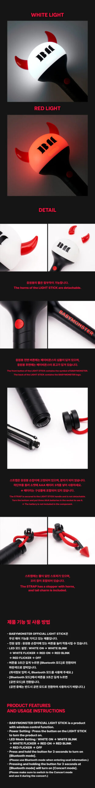 Oficjalny Light Stick BABYMONSTER to obowiązkowy gadżet dla każdego fana zespołu. Stylowy design, charakterystyczny dla grupy, sprawia, że świetnie prezentuje się zarówno podczas koncertów, jak i jako element kolekcji. To oficjalny produkt, dzięki któremu możesz poczuć wyjątkową atmosferę występów BABYMONSTER i wspierać swoje ulubione artystki w najlepszy sposób. Official Light Stick to także doskonały pomysł na prezent dla każdego miłośnika K-pop. Wyróżnia się solidnym wykonaniem i estetycznym wykończeniem, co czyni go niezastąpionym elementem fandomu. Dodaj go do swojej kolekcji i pokaż swoje wsparcie dla BABYMONSTER podczas każdego występu.