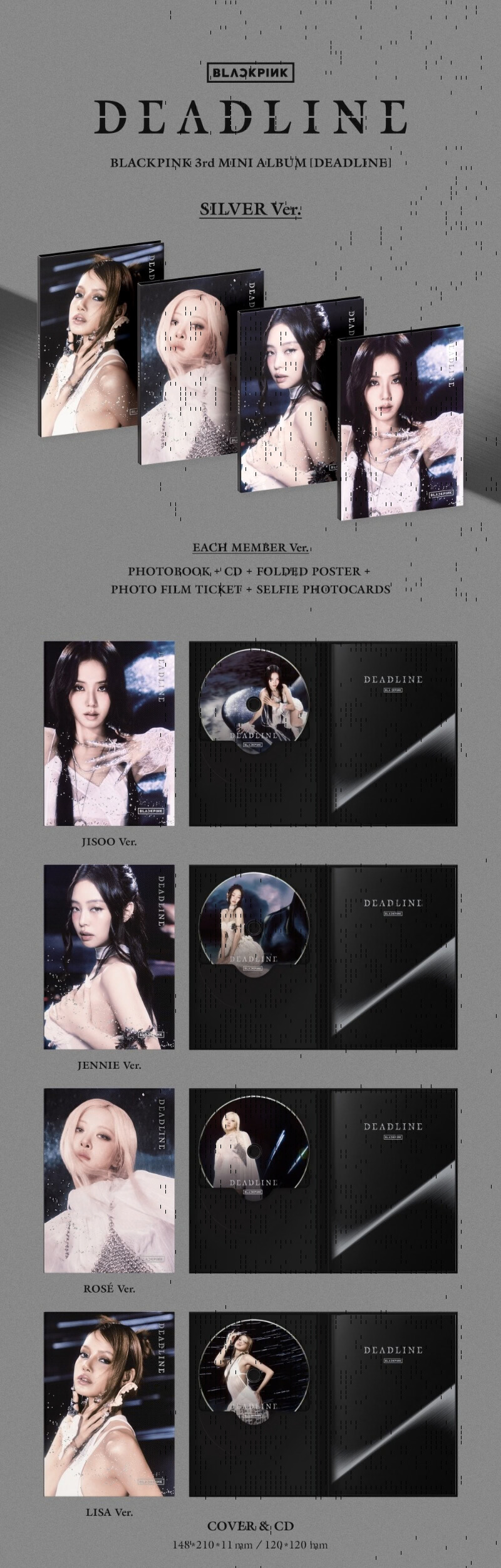 BLACKPINK – „Deadline” (3. Mini Album) – Silver Ver. to oryginalny mini album jednej z najpopularniejszych żeńskich grup K-pop. Edycja Silver Ver. przyciąga uwagę minimalistycznym, eleganckim designem, który podkreśla charakterystyczny styl BLACKPINK. Wydanie zawiera oficjalną płytę CD, fotobook przygotowany specjalnie dla tej wersji oraz losowe elementy kolekcjonerskie. Album został wykonany z dbałością o detale i wysoką jakość materiałów. To idealna propozycja dla fanów zespołu, kolekcjonerów albumów K-pop oraz osób szukających autentycznego merchu BLACKPINK. Doskonale sprawdzi się jako prezent dla miłośników koreańskiej muzyki. Produkt jest nowy, fabrycznie zapakowany i pochodzi z oficjalnej dystrybucji. Dodaj BLACKPINK „Deadline” – Silver Ver. do swojej kolekcji i ciesz się wyjątkowym wydaniem.