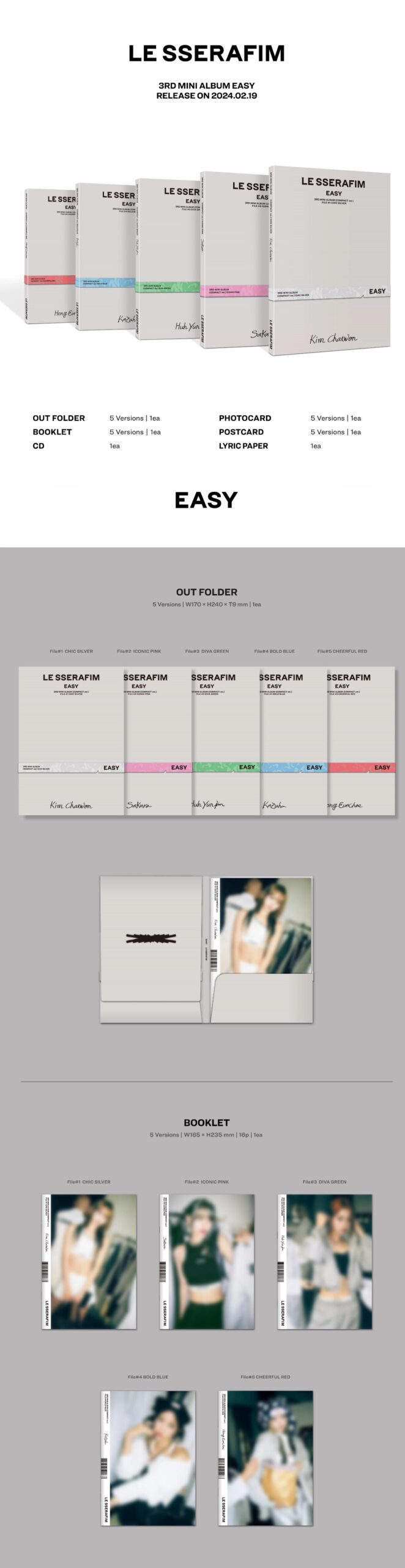 LE SSERAFIM:Easy – 3. Mini Album – COMPACT Ver. to oficjalne wydanie popularnej grupy LE SSERAFIM, stworzone z myślą o fanach K-pop oraz kolekcjonerach. Wersja COMPACT Ver. wyróżnia się poręcznym formatem i minimalistycznym designem, idealnym do codziennego użytkowania. Album zawiera oryginalną płytę CD z utworami oraz dodatki kolekcjonerskie charakterystyczne dla tej edycji. Starannie dopracowana oprawa graficzna podkreśla koncept mini albumu Easy. To doskonały wybór dla fanów zespołu oraz osób poszukujących autentycznego merchu LE SSERAFIM. Album świetnie sprawdzi się jako prezent. Produkt nowy, fabrycznie zapakowany, pochodzący z oficjalnej dystrybucji.